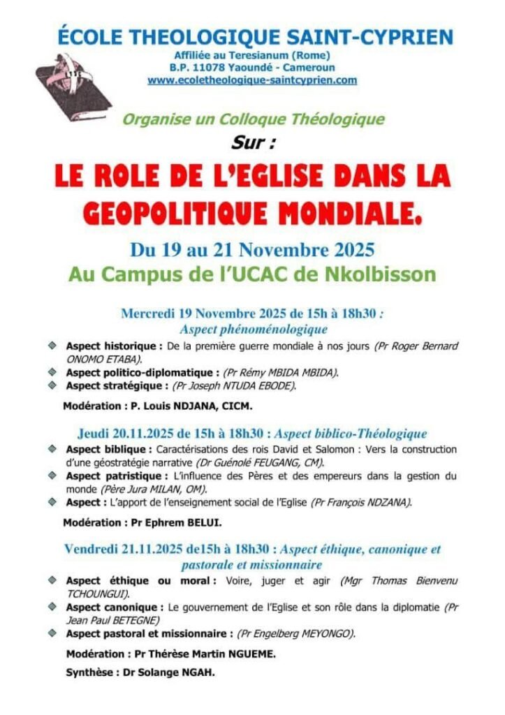 Colloque théologique sur le thème : Le rôle de l'Eglise dans la géopolitique mondiale Du 19 au 21 novembre 2025